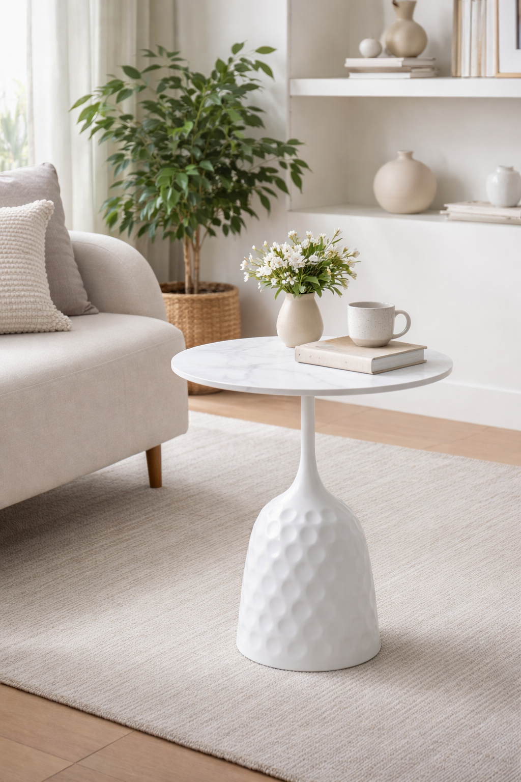 La mesa auxiliar CAVEZZO es perfecta para salones donde necesitas una superficie de apoyo junto al sofá o sillón, ideal para colocar una lámpara, libros o la taza de café. En dormitorios funciona como mesita de noche alternativa, mientras que en recibidores crea un punto de acogida elegante. Su diseño minimalista y acabado blanco facilita la combinación con sofás y sillones de diferentes estilos, desde los más contemporáneos hasta los más clásicos. El tamaño compacto de esta mesa auxiliar permite ubicarla en espacios reducidos sin restar amplitud visual.