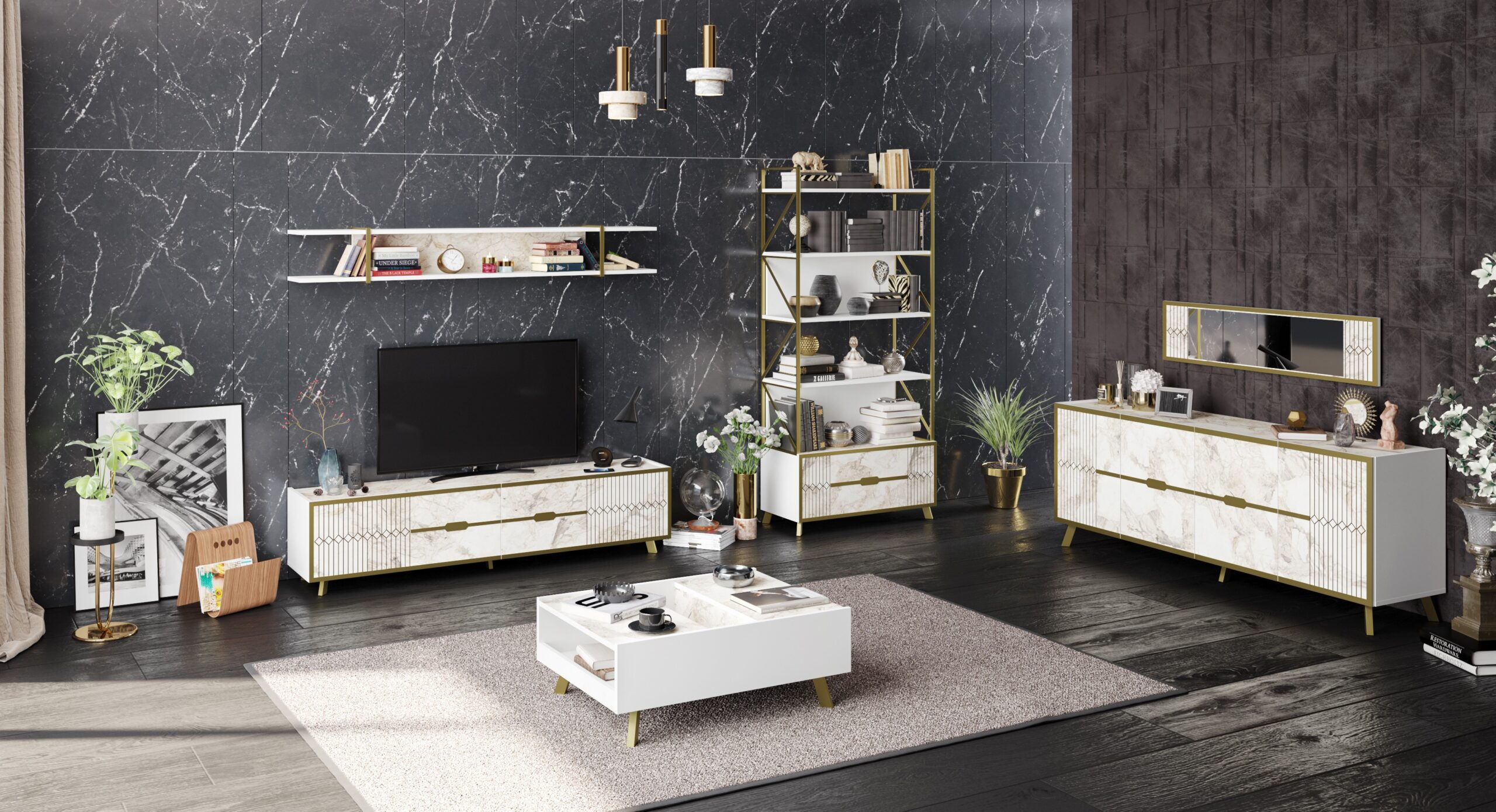 La mesa auxiliar ELOISE forma parte de una colección completa que incluye aparador, mueble de TV y mesa de comedor. Esta versatilidad permite crear ambientes coordinados en diferentes estancias, manteniendo coherencia estética en todo el hogar. Los acabados en mármol blanco y la estructura certificada FSC® se repiten en todas las piezas, facilitando la combinación armónica. Para quienes desean un salón-comedor con personalidad definida sin renunciar a la variedad funcional, esta colección ofrece soluciones completas. La posibilidad de ir adquiriendo piezas progresivamente permite adaptar la decoración a necesidades cambiantes y presupuestos escalonados.