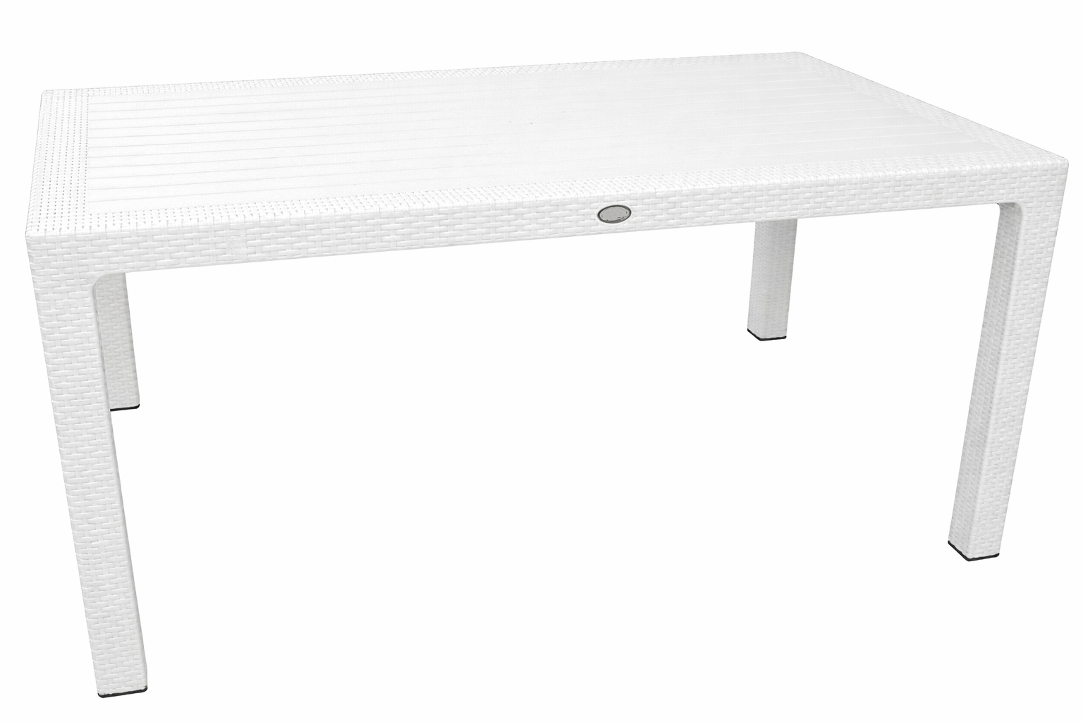 El acabado con textura imitación ratán de esta mesa aporta un valor estético diferencial que la distingue de las mesas de plástico convencionales. Este diseño reproduce fielmente el aspecto del ratán natural trenzado, consiguiendo un efecto visual cálido y sofisticado que recuerda al mobiliario artesanal mediterráneo. La textura trabajada en el polipropileno no solo cumple una función decorativa, sino que también proporciona un tacto agradable y antideslizante. El color blanco potencia la sensación de luminosidad y amplitud en el espacio, reflejando la luz solar y manteniendo una temperatura superficial más fresca que los tonos oscuros durante los días calurosos de verano.