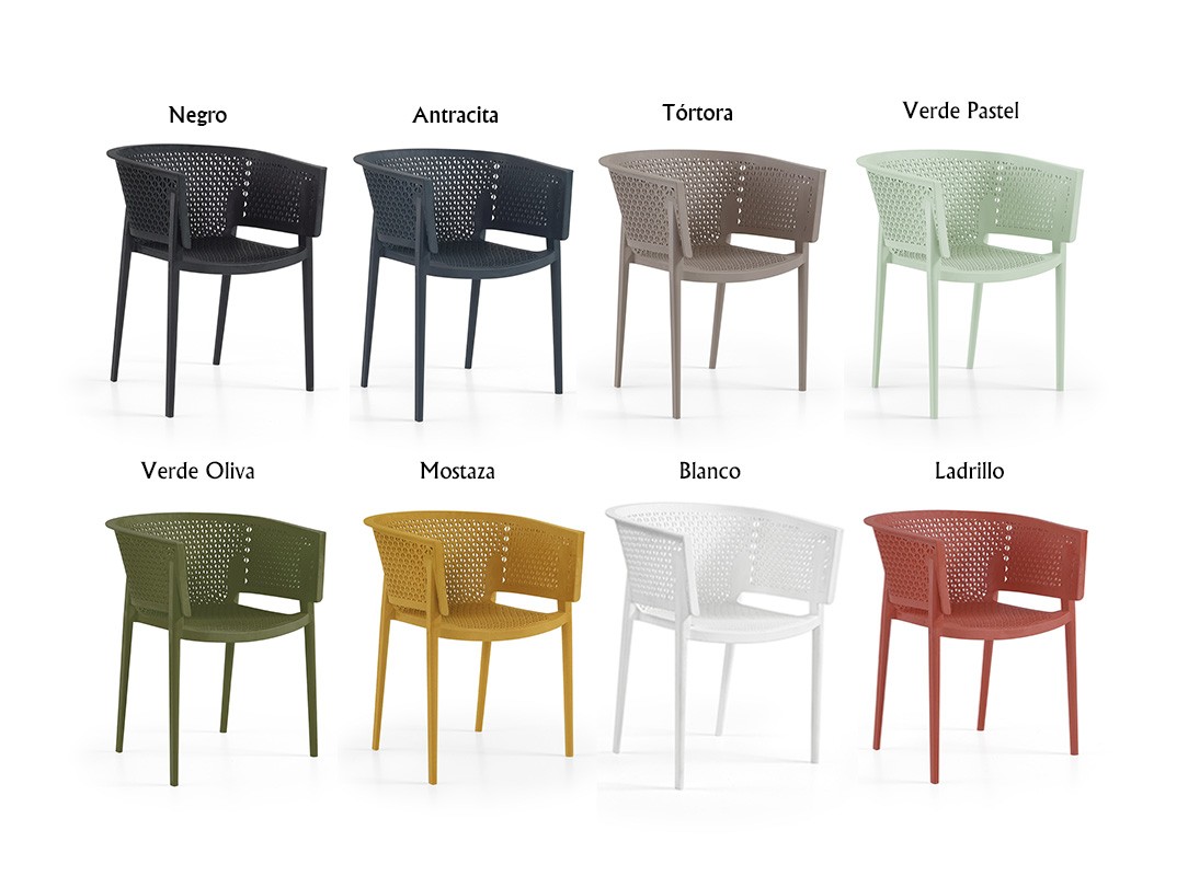 - Características: Apilable, tratamiento anti rayos UV, uso interior y exterior