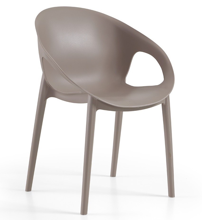 La silla de exterior Cosmos 60 apilable polipropileno está fabricada al 100% en polipropileno inyectado color tórtora, reforzado con fibra de vidrio para mayor durabilidad. Su tratamiento anti rayos UV garantiza que mantenga el color y propiedades intactas tras exposición solar prolongada. El diseño apilable permite almacenar hasta 16 unidades en un pallet estándar, optimizando espacio en almacén o terraza.