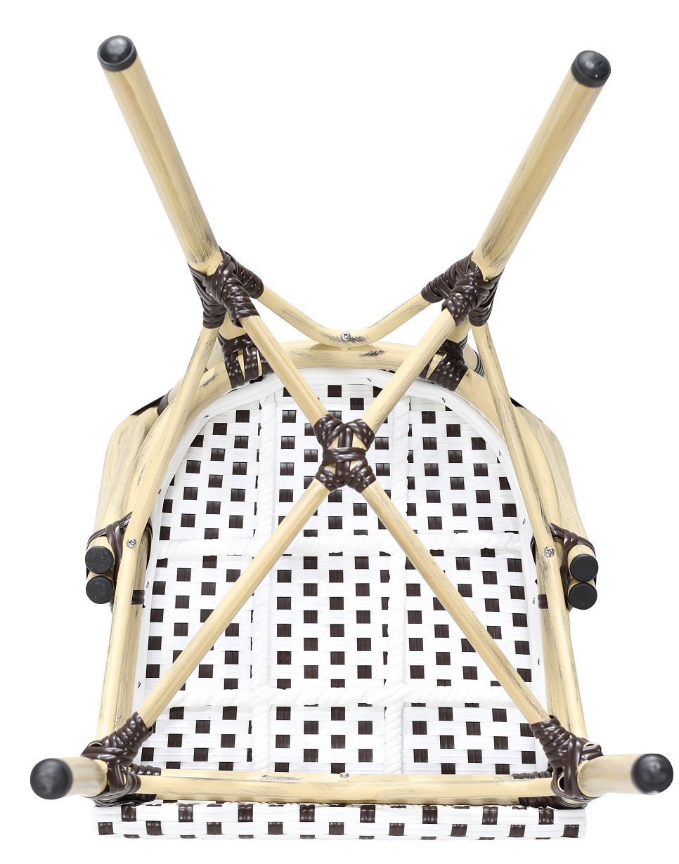 - Material: Tubo de aluminio de 1,5 mm de espesor con acabado bambú y ratán sintético blanco y marrón