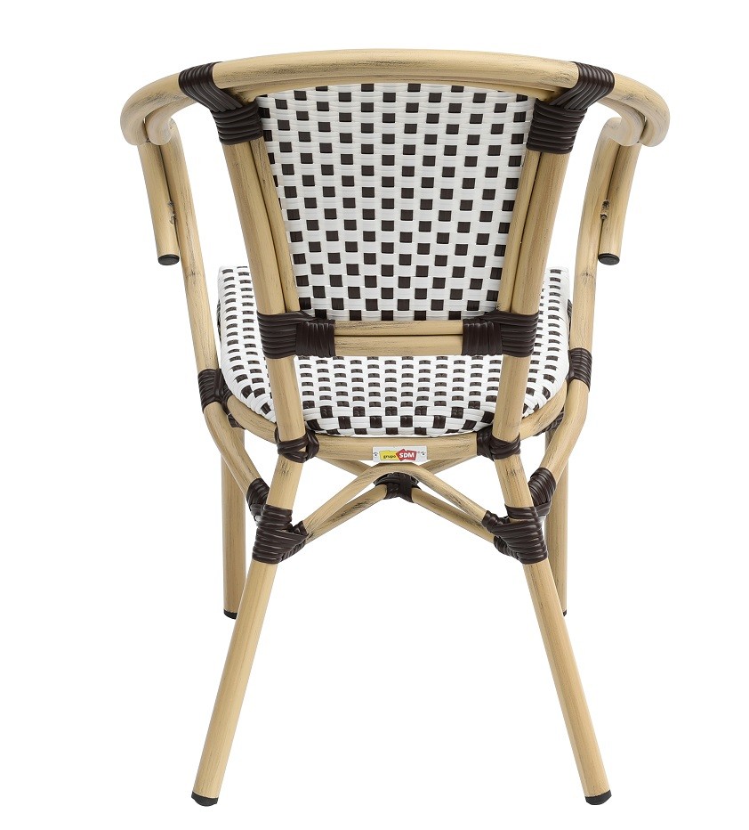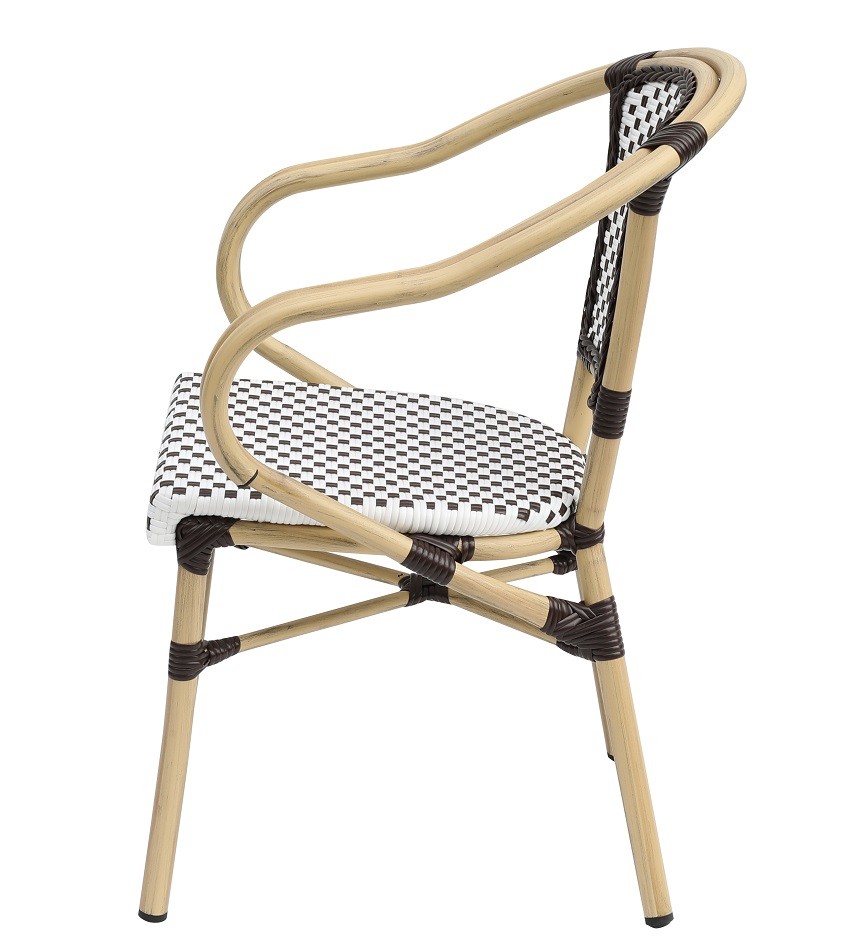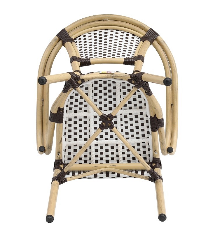 - Material: Tubo de aluminio de 1,5 mm con acabado bambú y ratán sintético blanco y marrón