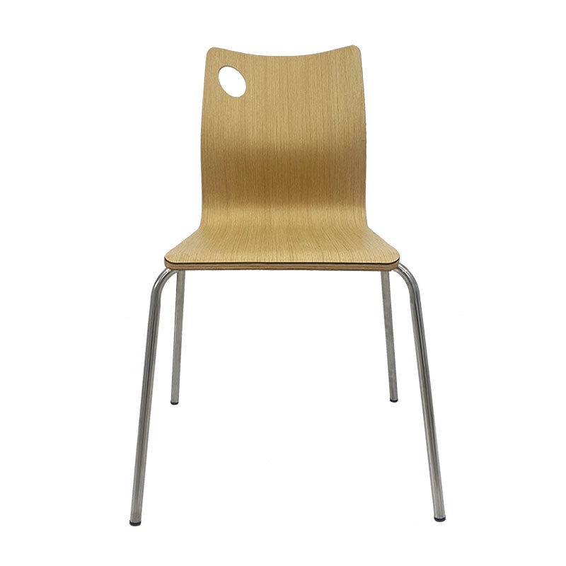 La silla de madera amelie 49 apilable combina un armazón tubular de acero inoxidable con asiento de contrachapado curvado y laminado HPL tipo formica. Su diseño permite apilar hasta 5 unidades para ahorrar espacio, mientras su construcción robusta garantiza uso intensivo en entornos domésticos y profesionales. El asiento monoblock curvado ofrece ergonomía sin necesidad de tapizado adicional.