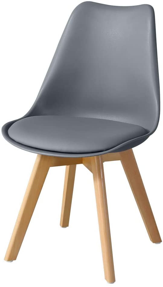 - Material: Base de 4 patas de madera maciza de haya, carcasa de polipropileno gris oscuro, cojín de similpiel gris oscuro