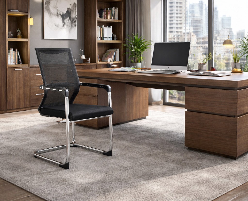 Este sillón fijo se integra en salas de espera, despachos de atención al público o como asiento complementario en home office. Su base de patín ofrece estabilidad sin ruedas, perfecta para espacios donde se requiere un asiento estático. Combina con cualquier mobiliario de nuestra selección de muebles de oficina, aportando coherencia visual gracias a su acabado cromado.