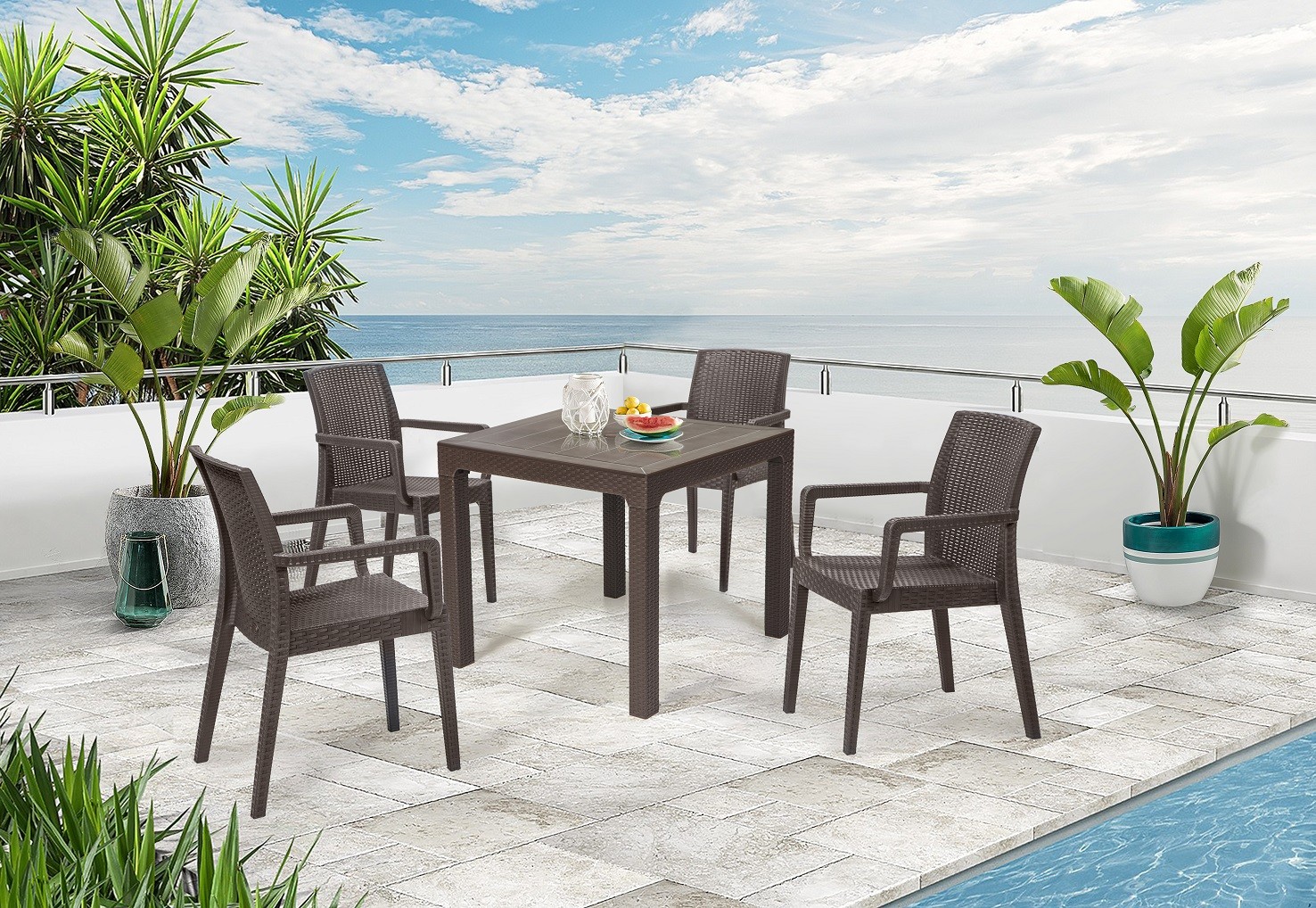Este sillón apilable es perfecto para hostelería profesional por su resistencia al uso intensivo y su fácil mantenimiento. En el hogar, se integra tanto en espacios exteriores como interiores, combinando con nuestras mesas de exterior disponibles en 80×80 cm, 140×80 cm y 150×90 cm. La silla de plastico glady 80 chocolate apilable permite crear conjuntos coordinados gracias a sus opciones en otros colores y su silla a juego.