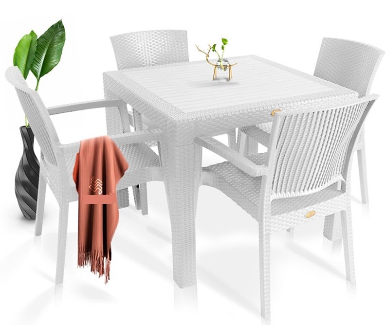 El polipropileno con inyección asistida por gas proporciona mayor rigidez estructural sin aumentar el peso. La textura imitación ratán aporta estética natural sin el mantenimiento de la fibra vegetal. El tratamiento anti-UV previene el amarilleamiento y agrietamiento por exposición solar prolongada, mientras que el anti-estático reduce la acumulación de polvo y suciedad.