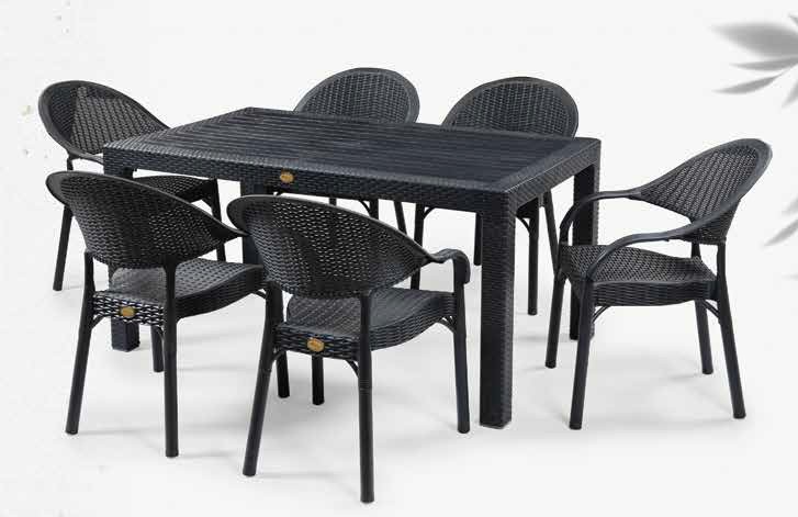 Incorpora tratamiento anti UV que previene decoloración por exposición solar prolongada, y patas de acero revestidas en polipropileno que resisten la corrosión salina, siendo ideal para ambientes costeros y terrazas soleadas.