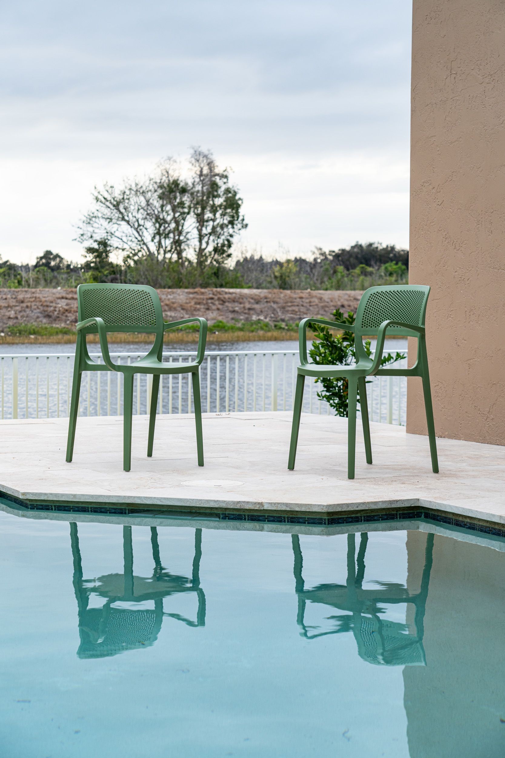 Este modelo funciona en terrazas de restaurantes, jardines particulares, patios de hostelería y comedores modernos. Su diseño multiusos permite utilizarlo tanto en exterior como interior sin comprometer la estética. Combínalo con nuestras mesas de exterior para crear ambientes coherentes en tu terraza o negocio. El taburete a juego permite completar la decoración manteniendo la línea cromática verde.