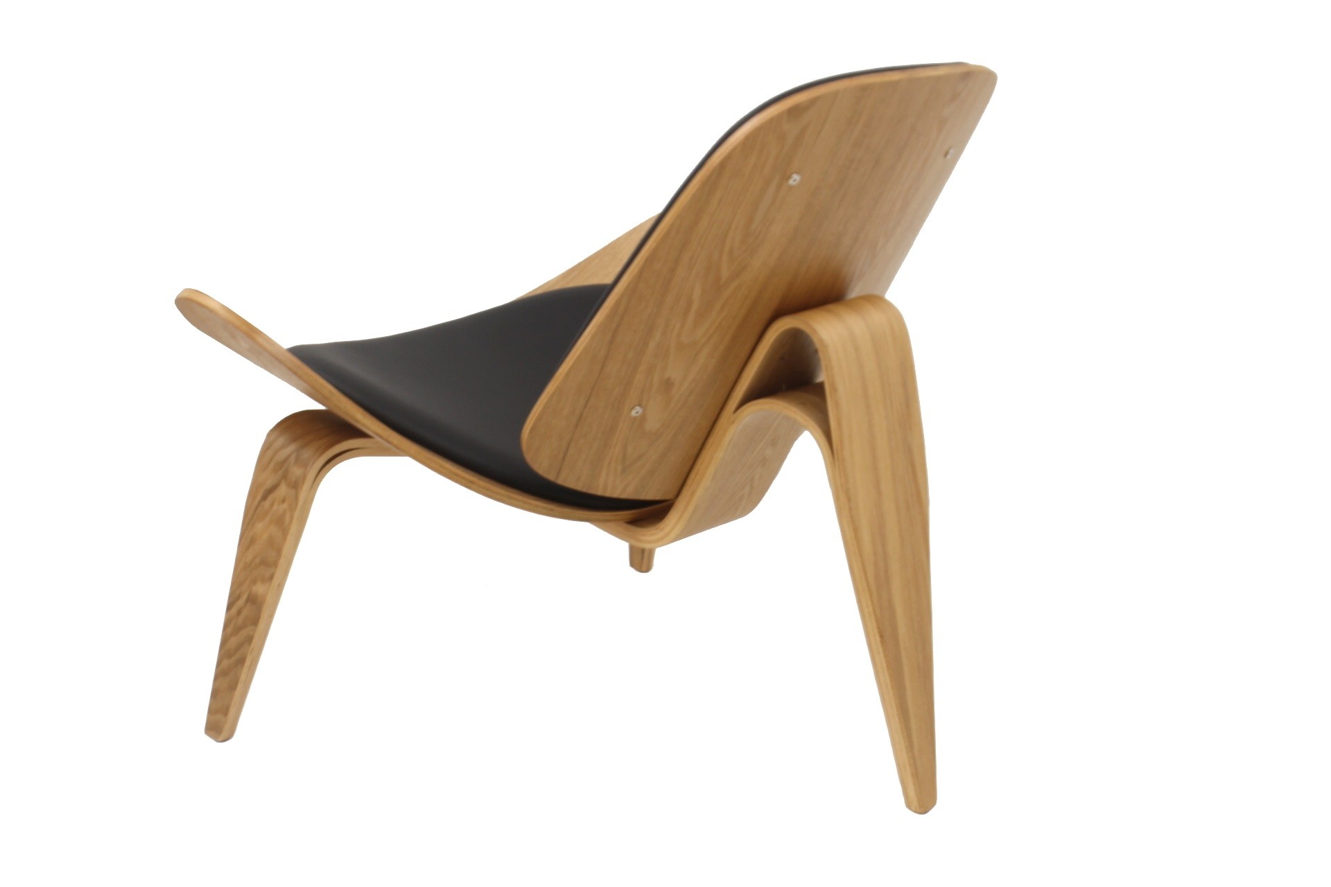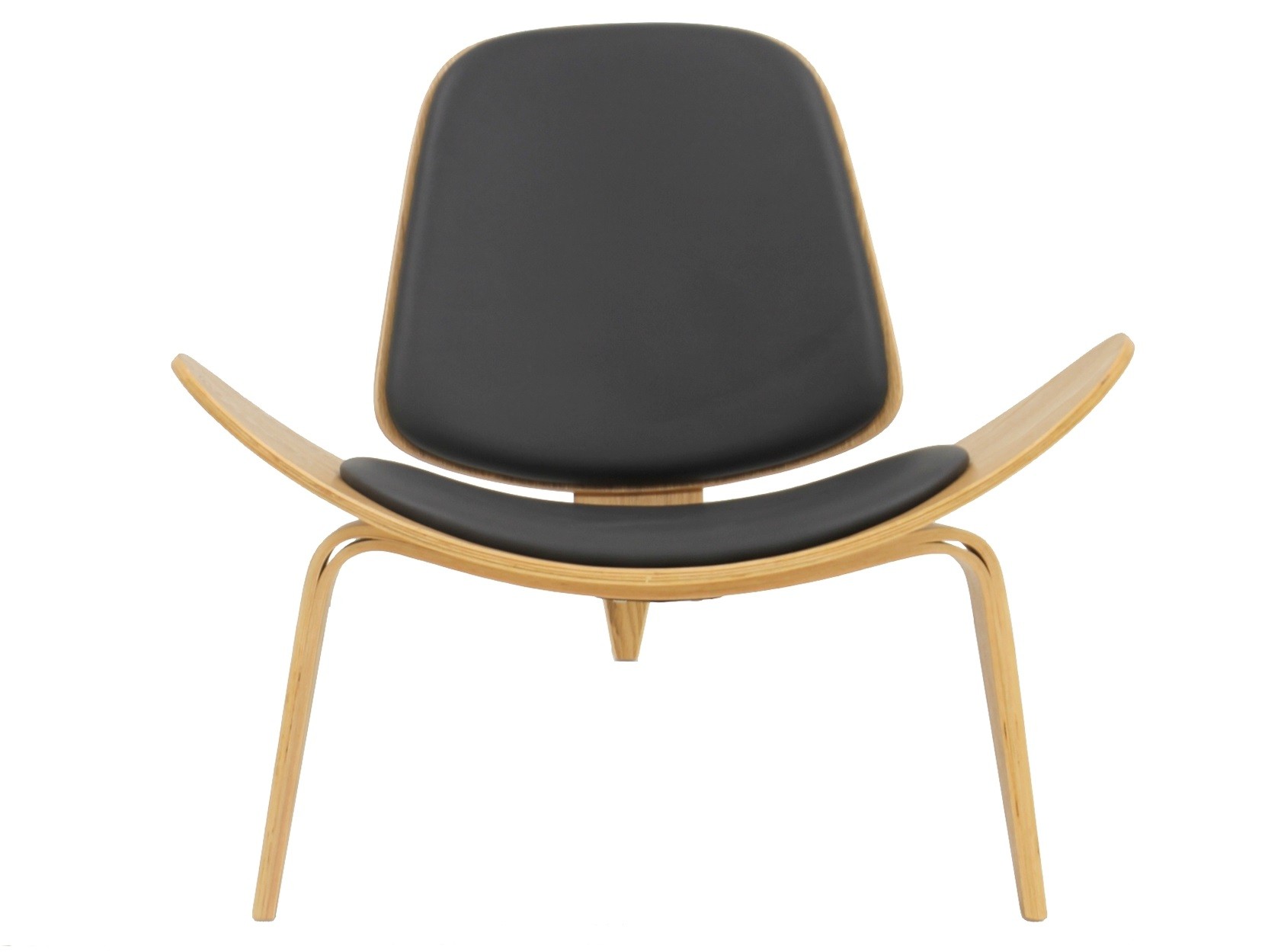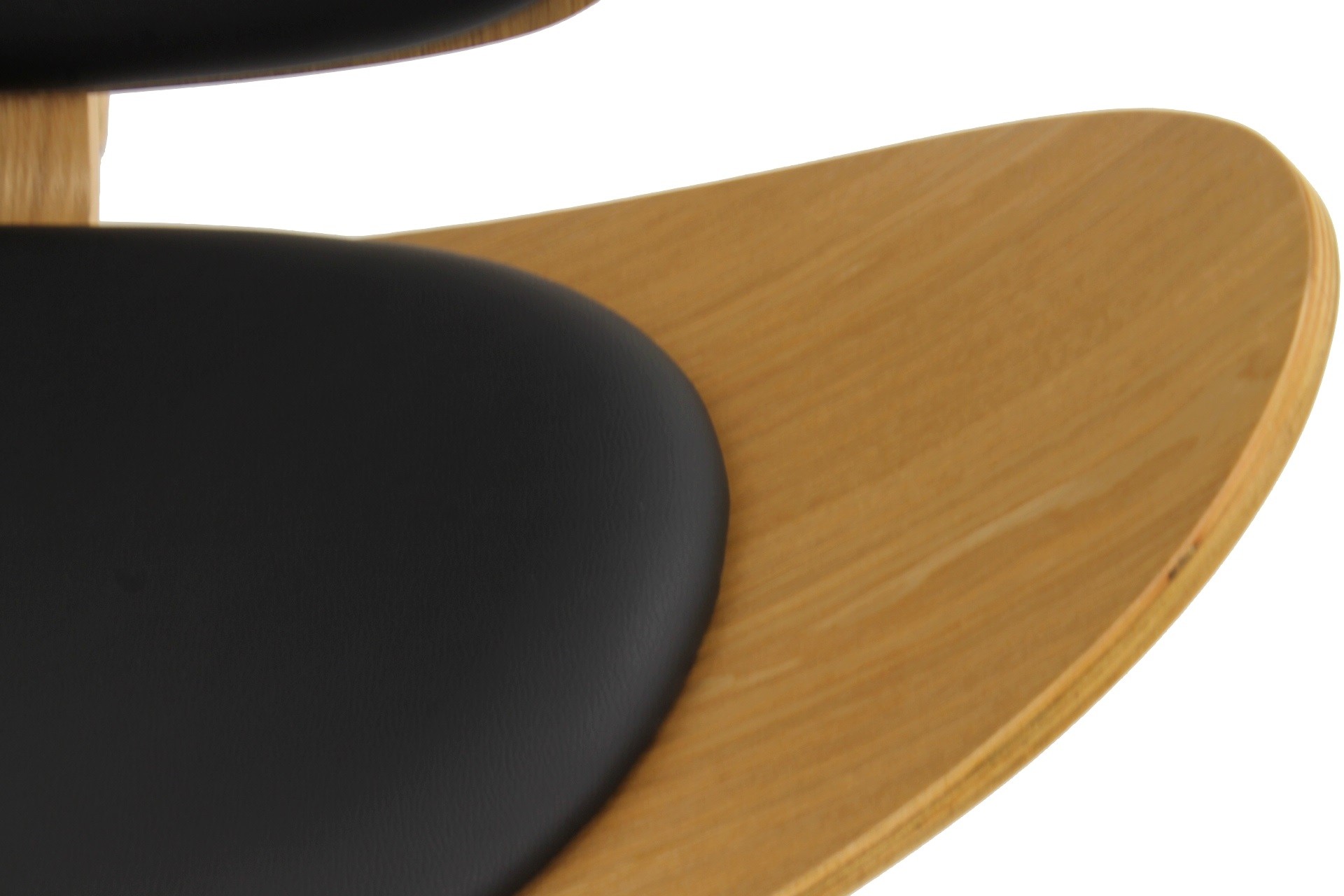 - Material: Armazón de madera curvada chapada en fresno barnizada. Pad de asiento y respaldo tapizados en similpiel negra