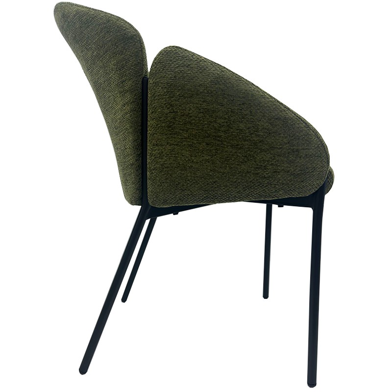 - Material: Patas metálicas con pintura epoxi negra / Tapizado chenilla verde bosque