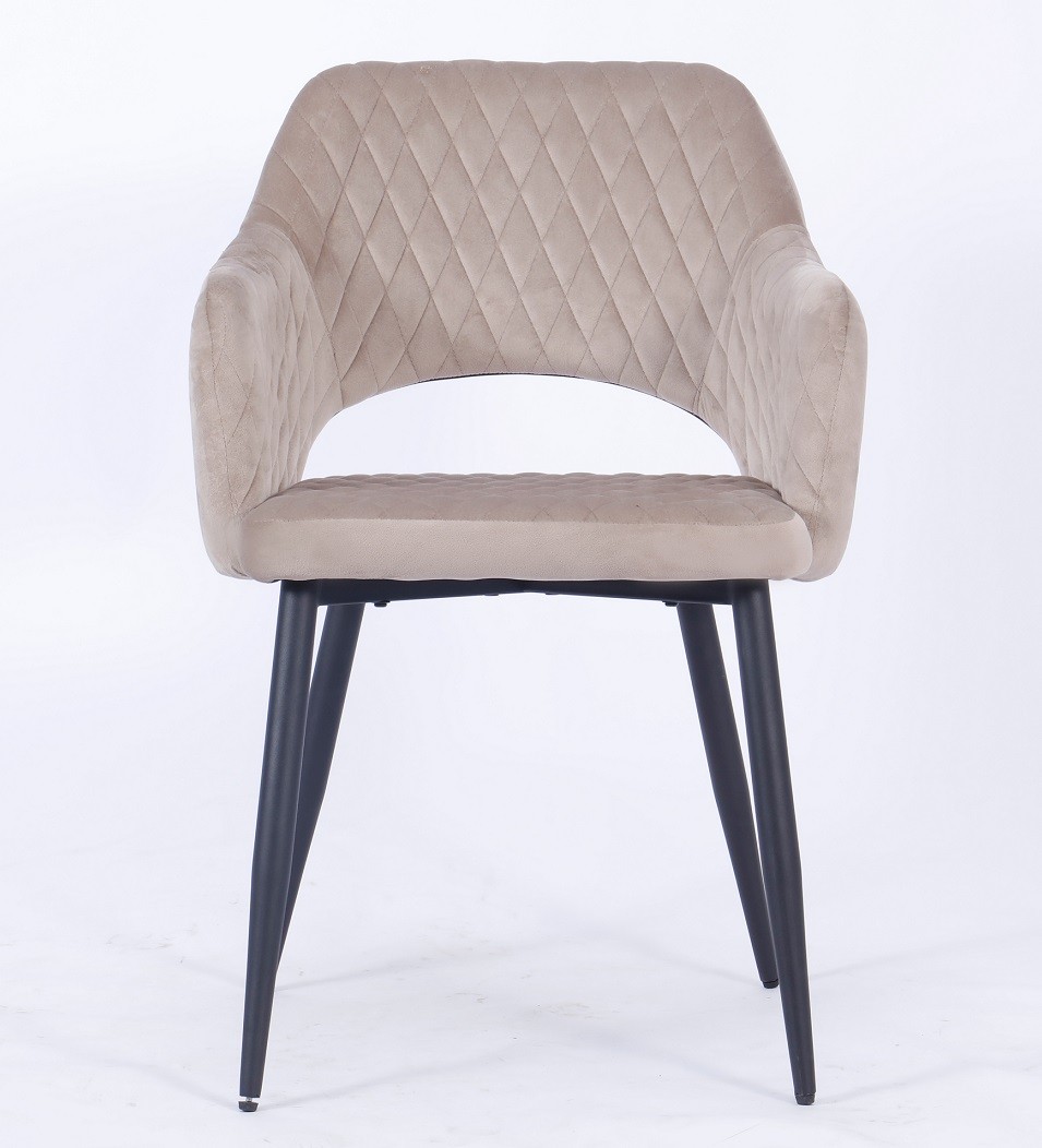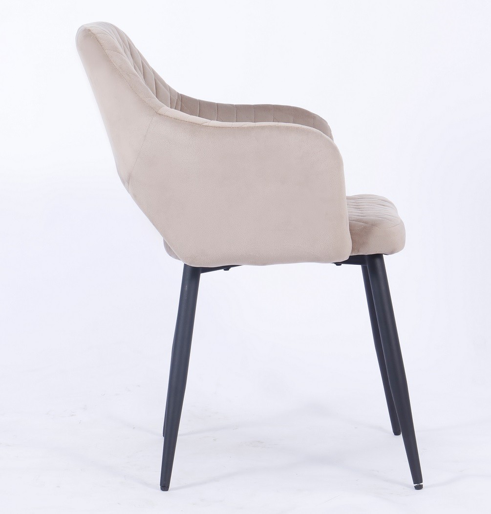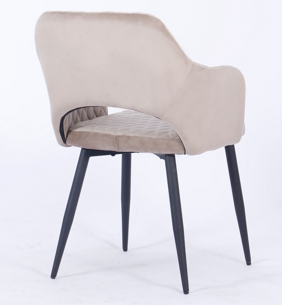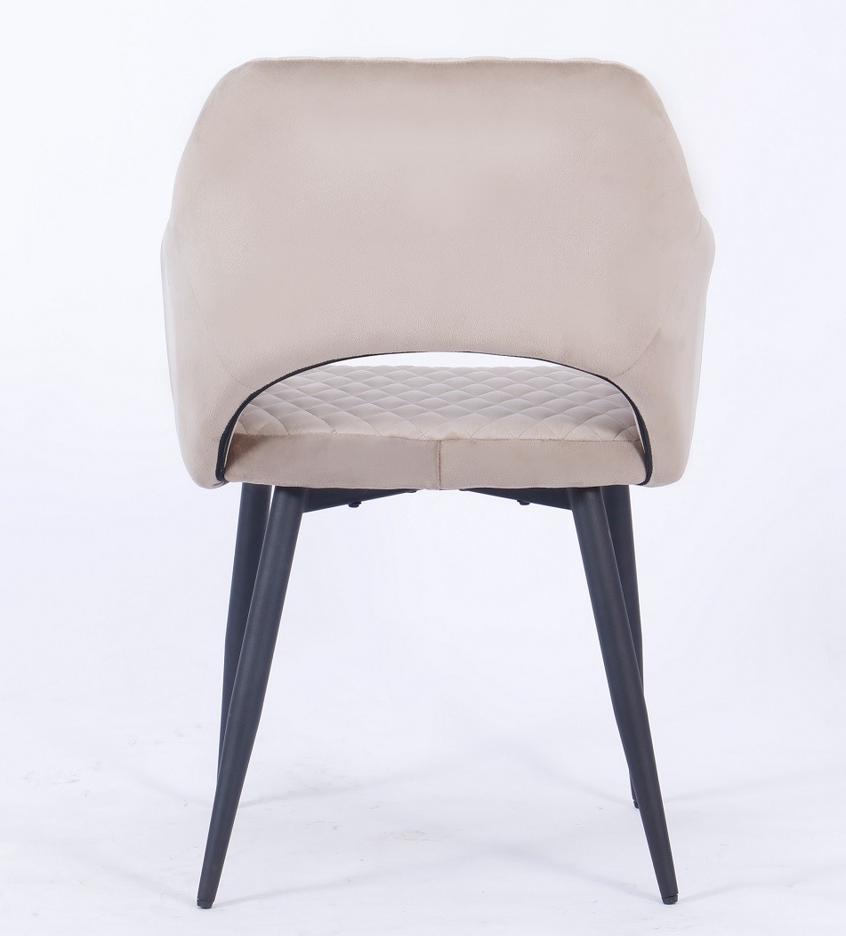 - Color/Acabado: Marrón visón en velvet, patas negras metálicas cónicas