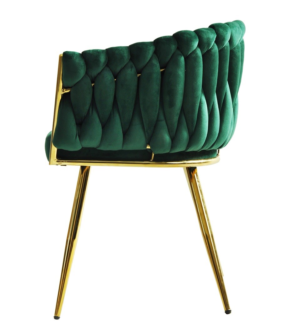 - Material: Armazón metálico con acabado cromado dorado, tapizado en tejido velvet