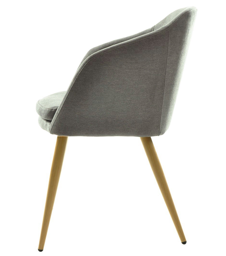 - Material: Asiento y respaldo de madera y goma espuma tapizados en tejido linen, patas metálicas con pintura epoxi imitación madera