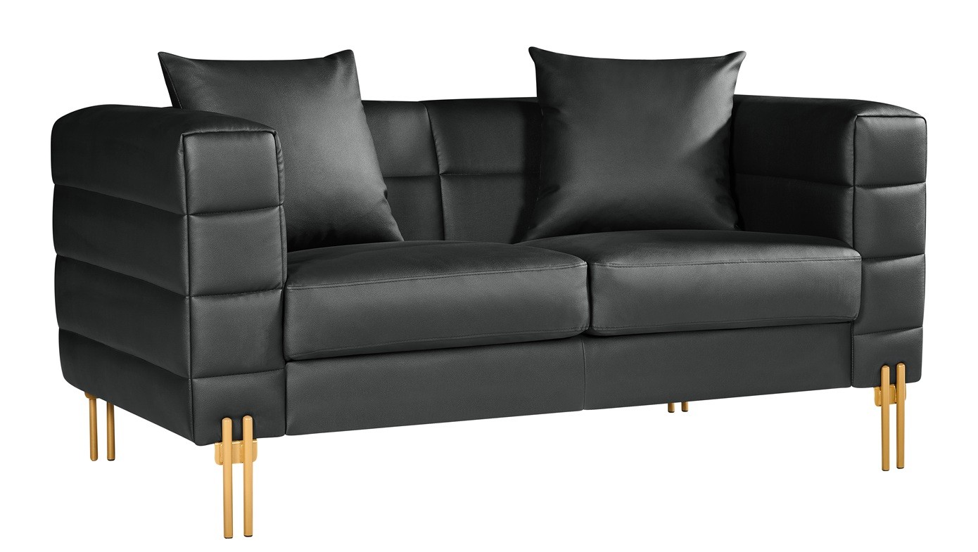 El sofa 2 plazas larios 157 negro similpiel combina elegancia y funcionalidad con su tapizado en similpiel negra y patas metálicas con acabado dorado. Su armazón de madera con espuma de alta densidad garantiza confort duradero, mientras que los cojines decorativos incluidos aportan un toque sofisticado. Con medidas de 157x84x71 cm, esta pieza se adapta perfectamente a salones compactos sin renunciar al estilo.