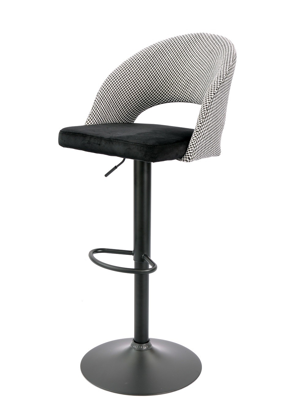 El taburete tapizado TEIDE combina estética y funcionalidad para adaptarse a cualquier espacio, ya sea tu cocina, isla americana o negocio de hostelería. Su diseño destaca por el contraste elegante entre el respaldo en tejido pata de gallo blanco y negro y el asiento tapizado en lujoso velvet negro, creando un punto focal sofisticado en cualquier ambiente. La regulación en altura mediante pistón de gas permite ajustarlo cómodamente entre 89,5 y 109,5 centímetros, garantizando la postura perfecta para barras de diferentes alturas. Gracias a su estructura metálica con acabado en pintura epoxi negra, este taburete tapizado ofrece resistencia y estabilidad para uso diario intensivo, tanto en el hogar como en espacios profesionales.